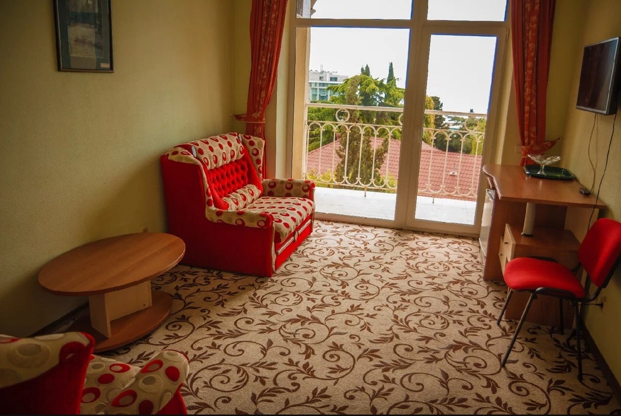 Просторный двухместный Люкс с максимальной вместимостью четырех человек, с джакузи, кондиционером, холодильником, видом на море. Питание на шведской линии можно заказать отдельно. Посещение крытого бассейна и банного комплекса по цене со скидкой 25% в соседнем отеле, и вся курортная инфраструктура в пешей доступности.
