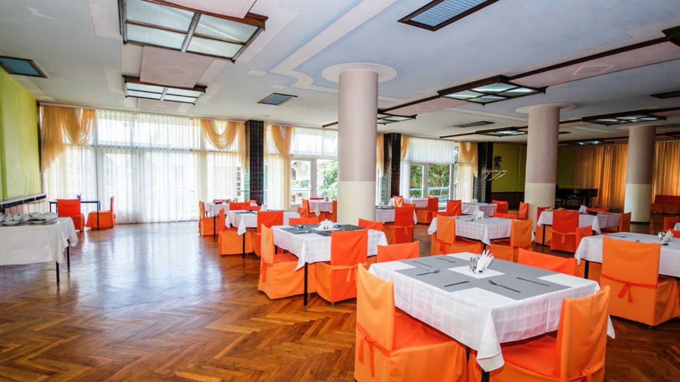 Столовая европейской кухни предлагает завтраки, полупансион или трёхразовое питание. Также работает пивной бар, а летом – уличное кафе.