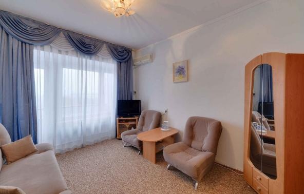 Номера санатория оснащены функциональной мебелью, телевизором, балконами, санузлами. В каждом номере был проведен капитальный ремонт в 2014 году.